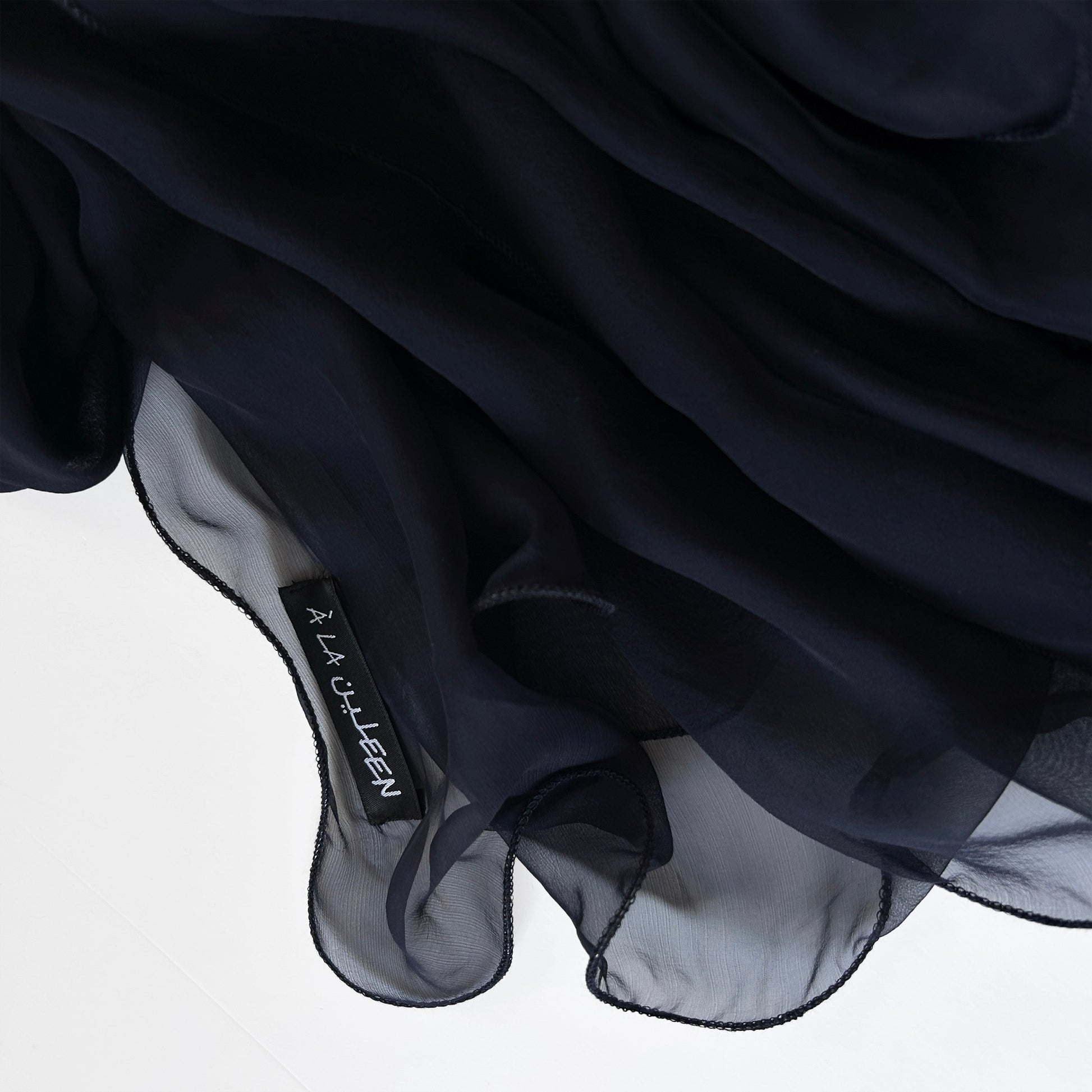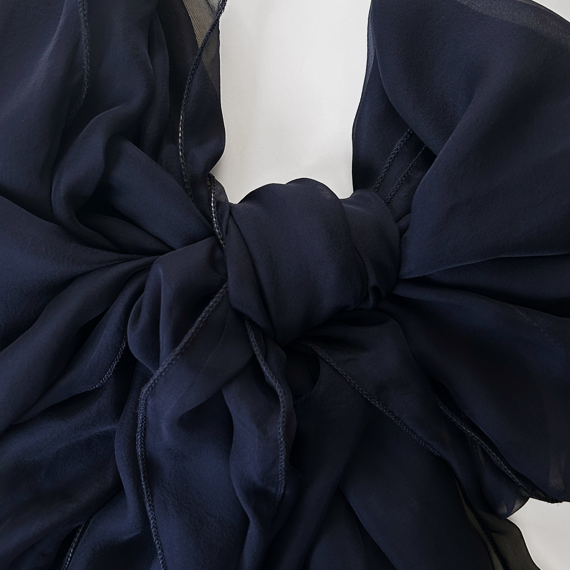 The à la Leen Double-Layered Silk Scarf- Dark Navy